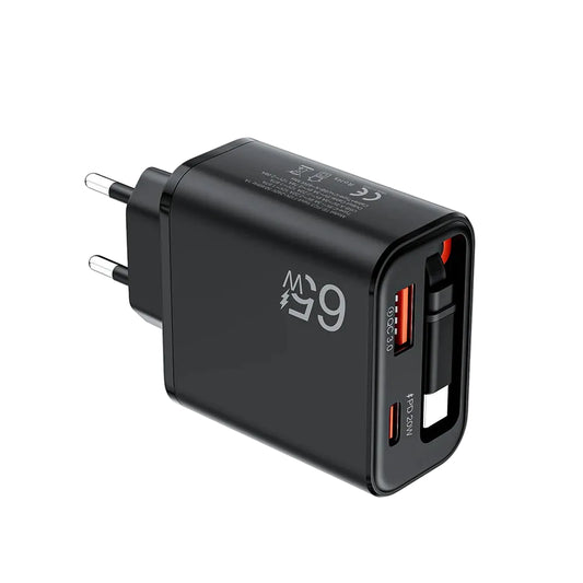 FlexCharge - Szybka ładowarka 65W z wbudowanym, zwijanym kablem USB-C.